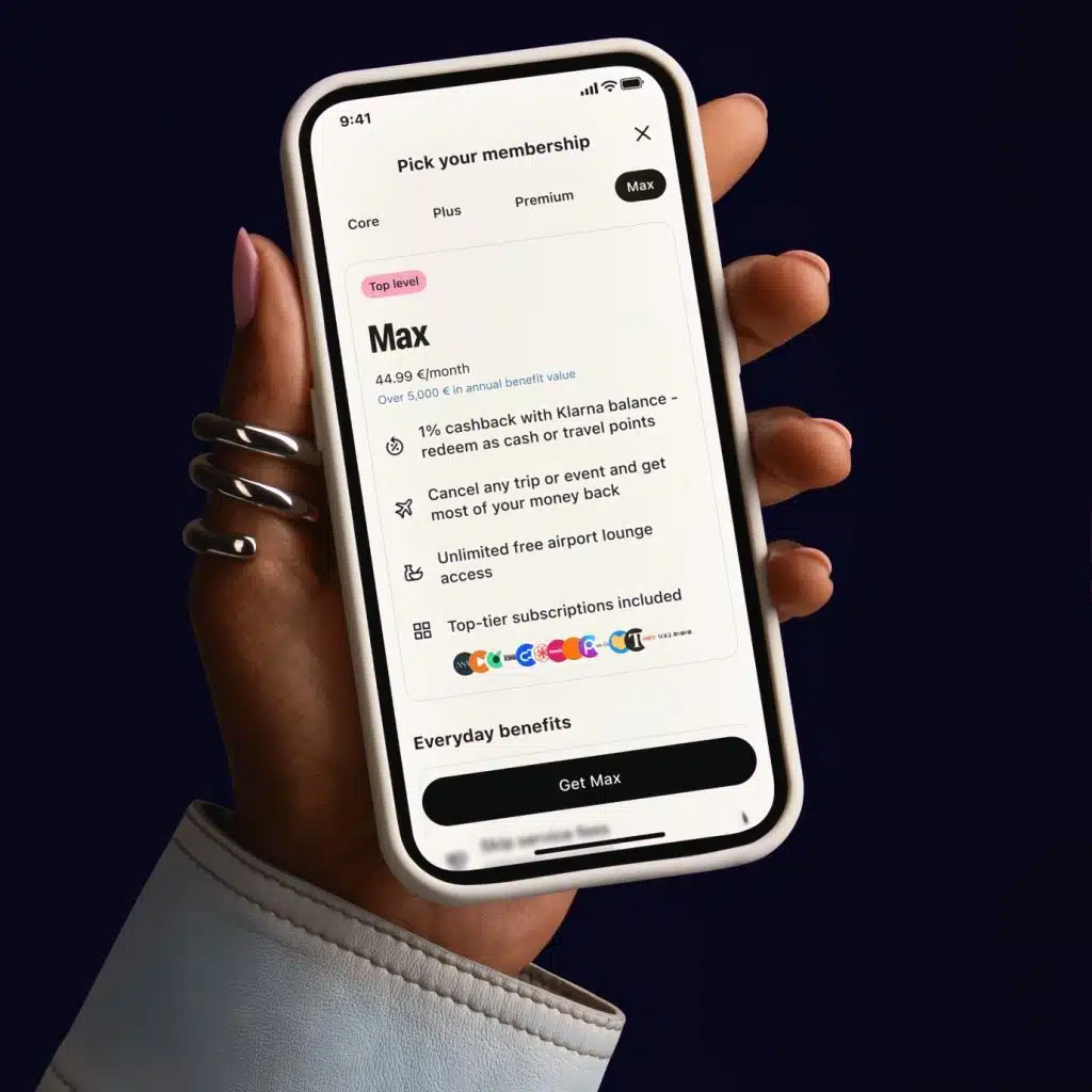 The Max level offers the same benefits plus airport-lounge access, travel and rental-car insurance, and a 16-gram rose gold metal card for a fee of $44.99 per month in the U.S. market. Both plans are expected to become available “within the coming weeks,” Klarna says.