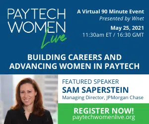 PayTechWomenLive features global leader Samantha (Sam) Saperstein, JPMorgan Chase, sharing strategies to help women advance their careers and the quality of their lives. Breakouts will be moderated by leaders in paytech. Register: paytechwomenlive.org.