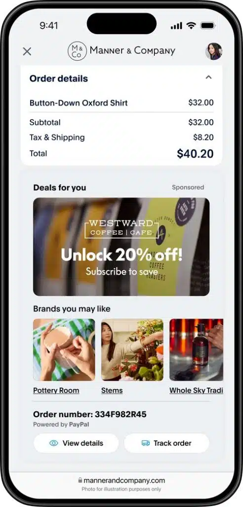 Small businesses can use PayPal Ads Manager to acquire customers across PayPal-owned properties and social channels, using such tools as PayPal Storefront Ads, which integrates checkout through PayPal and Venmo within live ads so shoppers do not have to leave the content they’re viewing to make a purchase. PayPal launched Storefront Ads earlier this year.